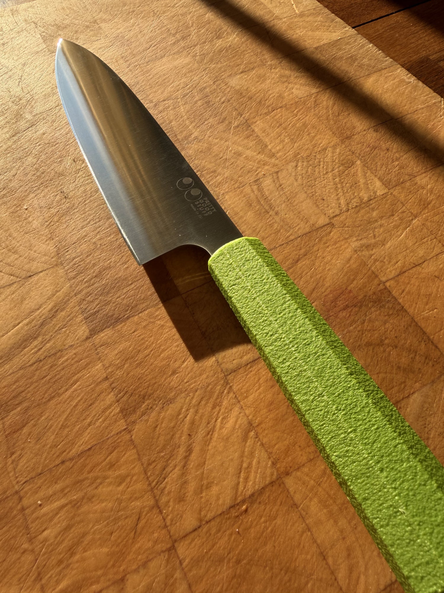 Based in Malmö, Sweden, we design and produce what we think are pretty pretty good kitchen knives. The blade is made with Swedish steel (14C28N) and the handle is made from recycled PET plastic, treated with food safe hard wax oil.